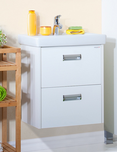 Тумба с раковиной "Палермо 55 подвесная белый глянец" - классическая современная подвесная модель, сочетающая в себе красоту и функциональность. Изготовлена из ЛДСП с лаковым покрытием (высокий глянец). Такую мебель очень удобно мыть, она неприхотлива в уходе и не допускает впитывания воды и пара. Белоснежный цвет модели подойдет для интерьера любой ванной комнаты. Два вместительных выдвижных ящика очень удобны и предназначены для хранения необходимых в ванной комнате вещей.: